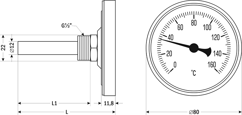 | Диапазон показаний | 0...+120°C | 0...+160°C