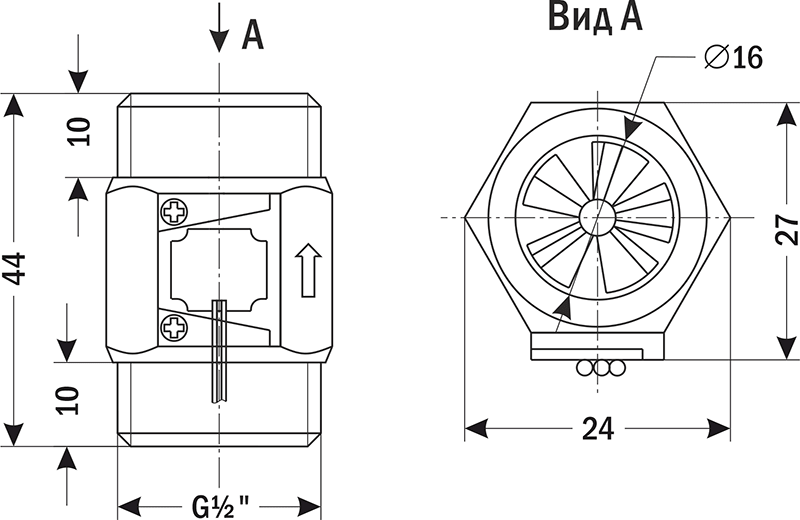 - Для корректной работы датчика расхода направление потока жидкости должно совпадать с направлением стрелки на корпусе