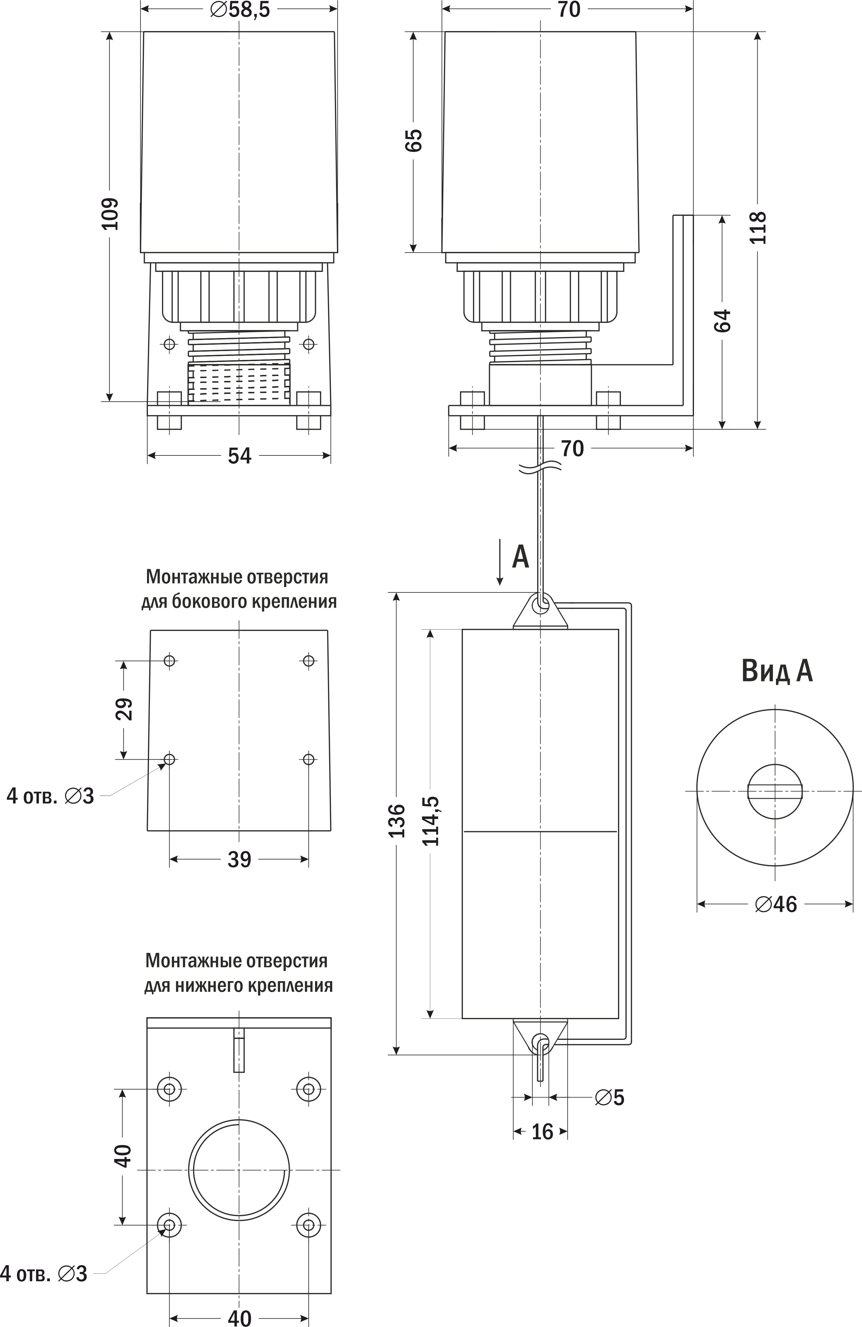 • Несколько способов монтажа прибора (L-образный кронштейн для установки на стену или в крышку резервуара; 2 размера резьбового соединения для установки в крышку резервуара – G¾" и  G1")