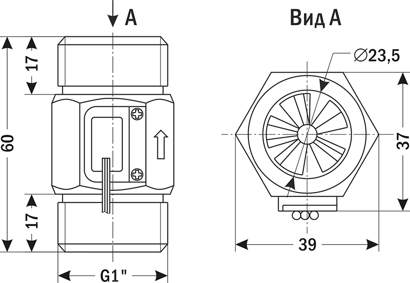 - Для корректной работы датчика расхода направление потока жидкости должно совпадать с направлением стрелки на корпусе