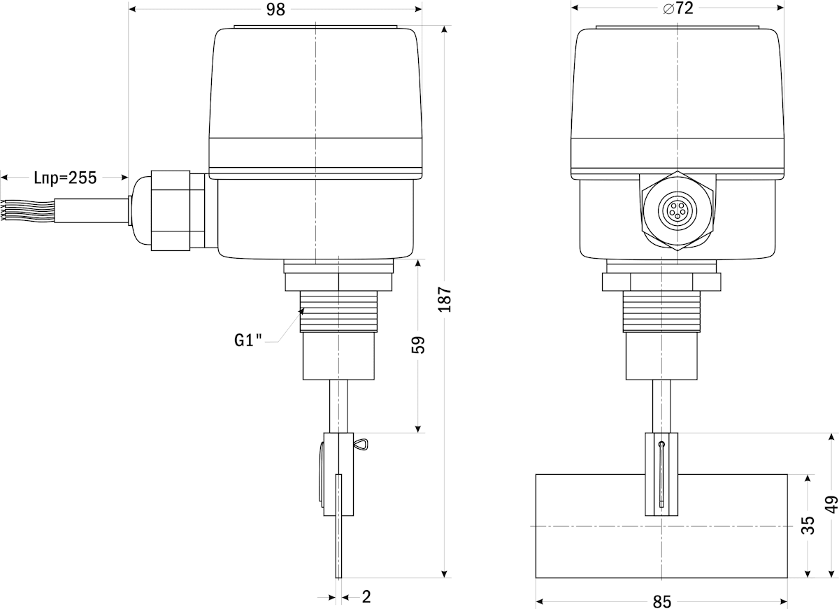 Принцип действия и область применения: В корпусе датчика установлен электродвигатель с редуктором. Вал датчика соединяется с выходным валом редуктора при помощи муфты. Соединительная муфта защищает редуктор от механического повреждения при принудительном повороте вала под действием внешних усилий.